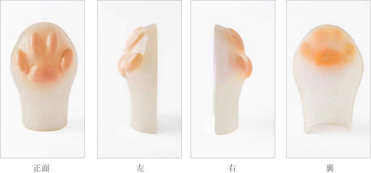A : 肉球カバーはF R P製(ガラス繊維強化プラスティク)で、一つ一つ職人の手でつくられております。